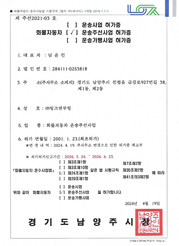 링크앤무빙은 이사화물 정식 허가업체로 안전한 계약과 이전서비스를 제공합니다.